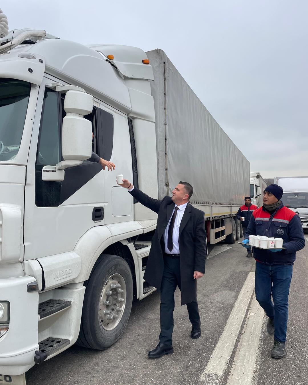 Bulgaristan’a açılan Hamzabeyli Sınır Kapısı gümrük sahasında, tır kuyruklarında bekleyen şoförler için anlamlı bir dayanışma örneği sergilendi. Lalapaşa Belediye Başkanı Zafer Sezgin Geldi, dondurucu soğukta saatlerce sıra bekleyen kaptanları ziyaret ederek yanlarında olduklarını hissettirdi.