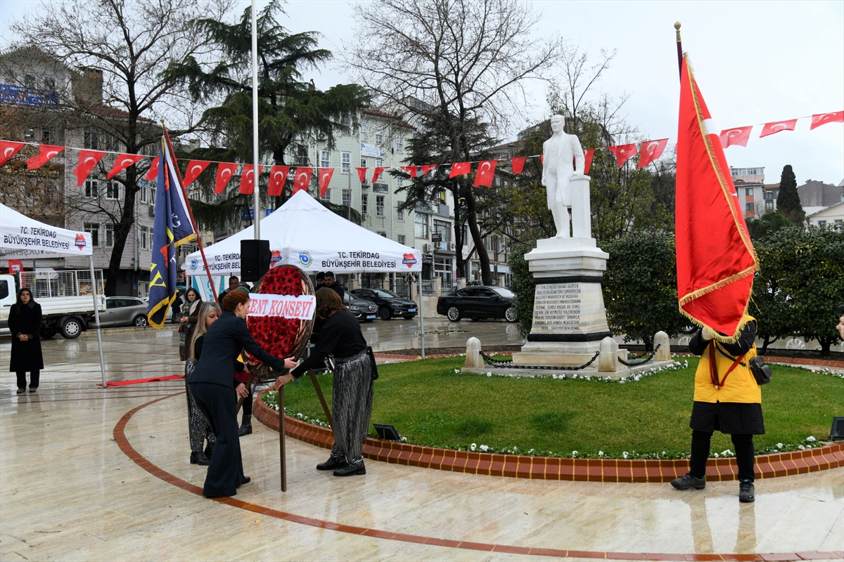 Valilik önünde gerçekleştirilen törende, Tekirdağ Kent Konseyi Başkanı Berrin Başol Menekşe tarafından Atatürk Anıtı’na çelenk sunuldu.